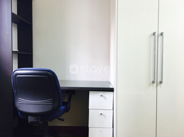 個人衛浴、洗衣機、桌子、椅子、冷暖氣、衣櫃、單人床、冰箱、廚房 |