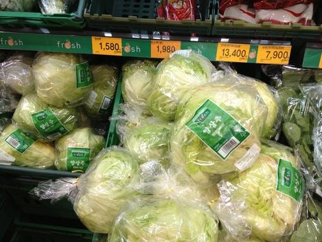 然後青菜的話,從上而下是감자(馬鈴薯)、양상추(生菜)、양배추(高麗菜)、양파(洋蔥)。馬鈴薯一袋6個1980W,高麗菜1顆2480W、洋蔥一袋6個3980W。高麗菜好像還好,但洋蔥有點貴說……
