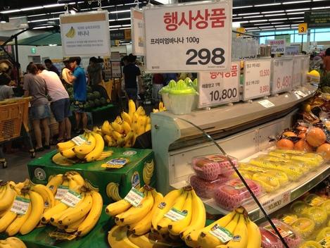 再來是水果囉!!!!!!수박(西瓜)一顆13900韓圜。바나나(香蕉)大概4500韓圜。