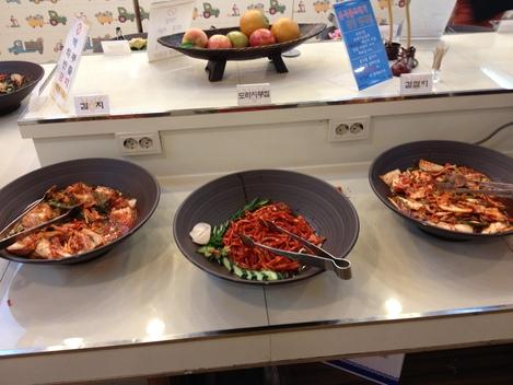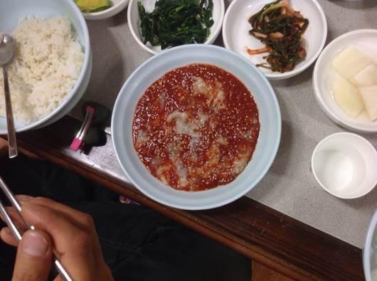 今天的午餐是泡菜・海苔・牛肉湯・煎餅・年糕等等。