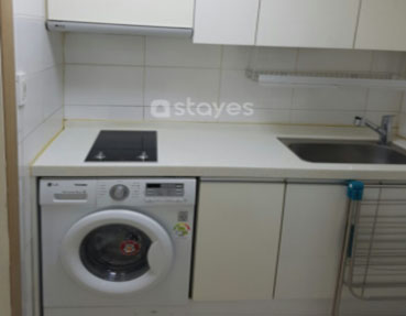 個人衛浴、洗衣機、冷暖氣、桌子、衣櫃、單人床、冰箱、廚房