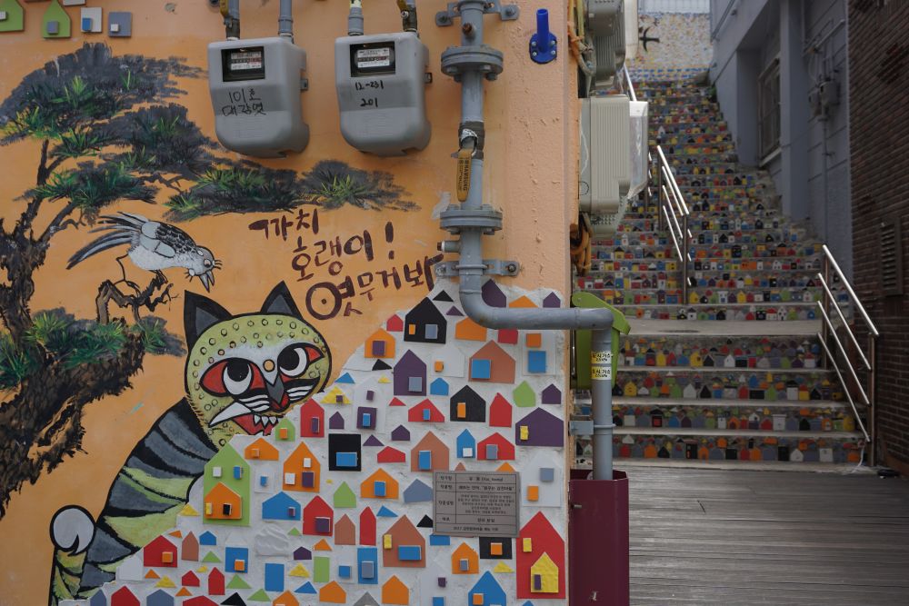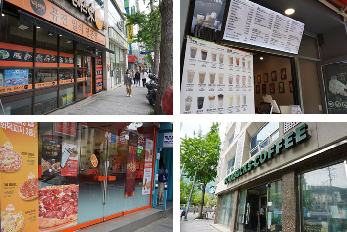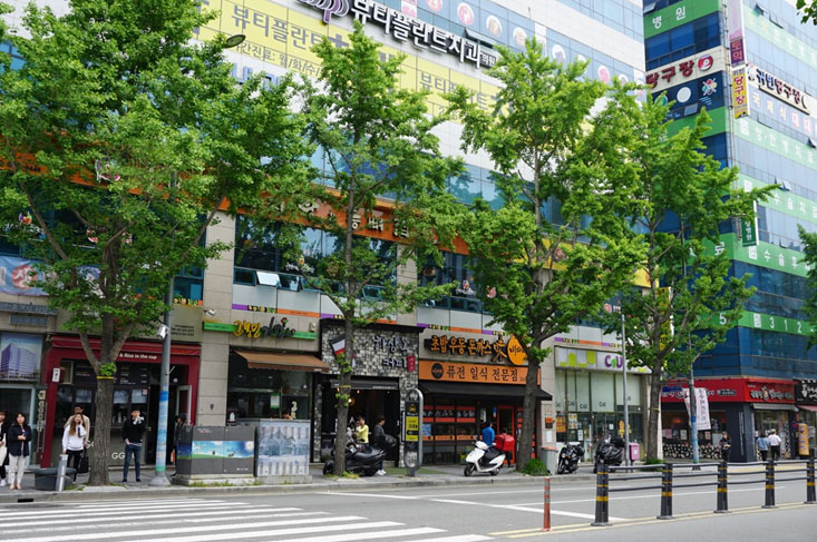 離開學校後的我們決定再多逛逛周圍的環境。剛剛從語言中心走來只有簡單地看看,從學校對面看過去,餐廳店家林立,周邊機能豐富,不管是休閒還是飲食方面都非常方便,學校距離南浦洞也沒有很遠,想要逛街血拼也是沒問題。