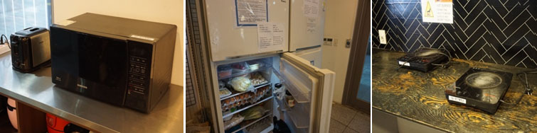 特別的是,同樣在這個空間,有開放式廚房廚具,這裡可以自己煮東西來吃的!有提供飲水機、電磁爐、微波爐和烤麵包機,也有大冰箱可以讓學生放食材。(房間內也有專屬的小冰箱,放不下的食材可以冰在一樓的大冰箱,這樣也很方便料理。)