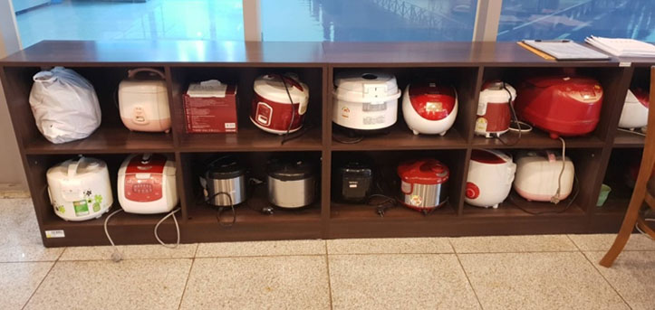 這些是學生各人的油鹽醬料(也太多XD),也可以自己準備電鍋或其他器具使用。
