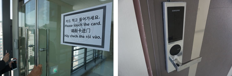 我們來到了宿舍的樓層!五樓到十五樓都是宿舍,這裡每一層樓進出都要刷卡,住宿房間位於不同區域的卡是不能互通的,自己的房間也是刷卡進門囉(好像住飯店一樣>v<)!