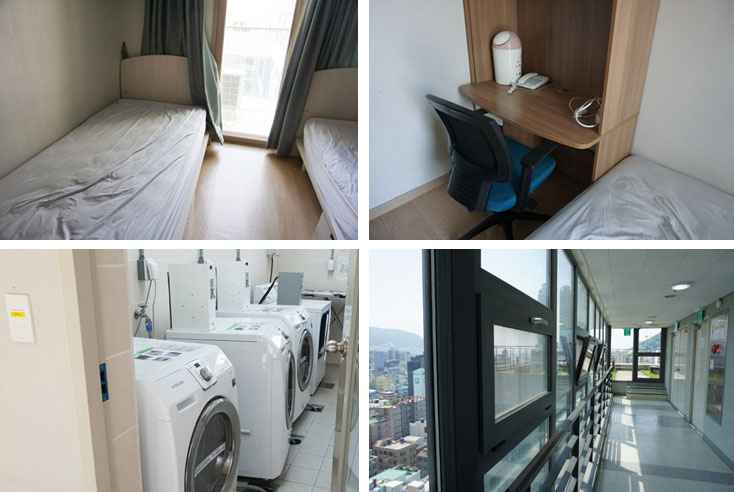 宿舍房間是兩個學生一間,是非常棒的人數配置!不會覺得一個人很孤單,或是因為人太多吵雜。另外有男女分用的洗衣室~各配有多台洗衣、烘衣機