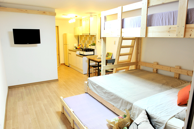 ONE ROOM公寓是獨立套房,一般受韓國社會人士歡迎。除了備有基本家具外,還附設廚房,房間也較寬敞舒適,也有管理員。但是保證金(300~1000萬韓元)及仲介手續費(半個月~1個月房租)、額外費用較高,適合有預算的學生。基本上需要簽約1年。房租行情為約50~100萬韓元/月,視房型、設備、地點而定。