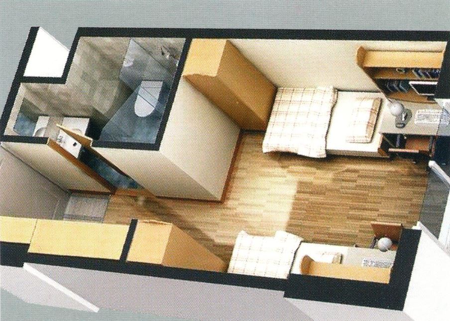 考試院翻新的分租套房,基本上為單人房。分為獨立及共用衛浴。