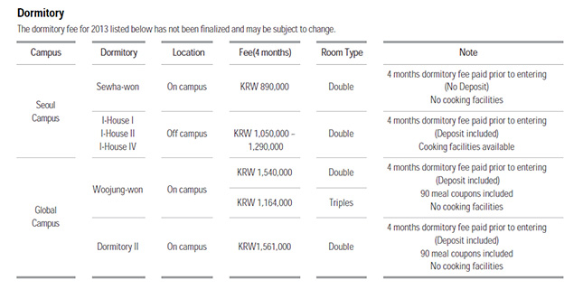 申請費 : 大學15萬韓元,研究所7萬韓元(藝術學系9萬韓元)
