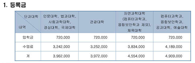| 六個學/一學期+寒/暑假 | 2,669,400KRW | 2,002,800KRW |